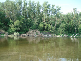 Часам к 11-12 мы подплыли к Желдакам, где решили тормознуться, дабы выпить в магазинчике свеженького разливного пивка, докупить хлеба, продуктов, затариться водичкой. Потратив на это пару часов, отплыли от села в 14-00 и в 15-00 стали на обед. Перед самым пляжиком, где мы обедали мне удалось впервые в рыболовной практике поймать чехонь грамм на 100. Я ей радовался больше чем крупному голавлю или щучке.